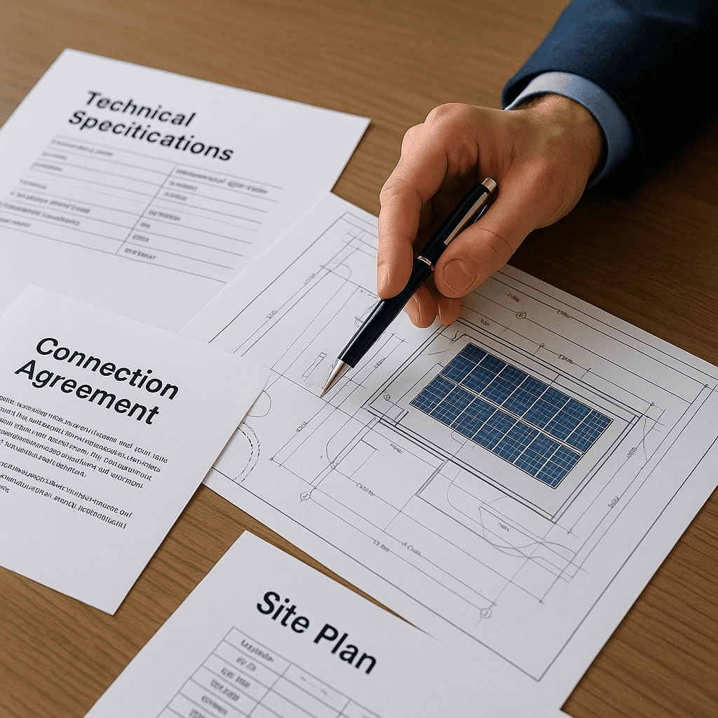 To begin with, you’ll need to gather several key documents to support your DNO application. These typically include technical specifications of your solar system, a detailed site plan, and a connection agreement. Each document plays a vital role in demonstrating compliance and ensuring that your project integrates seamlessly with the existing grid infrastructure.