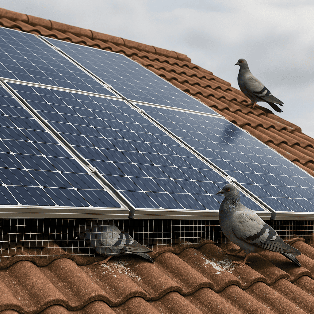 How does pigeon protection impact the efficiency of residential solar panels?